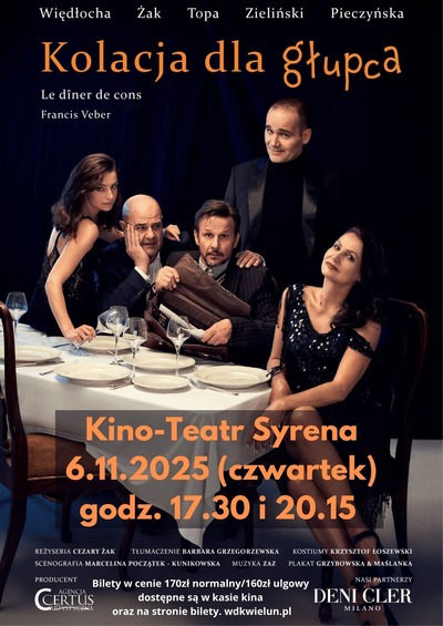 KOLACJA DLA GŁUPCA – to hit teatralny, od lat grany na deskach wielu światowych teatrów! To znakomita gra aktorska, wartka, zabawna akcja i zaskakujący finał.